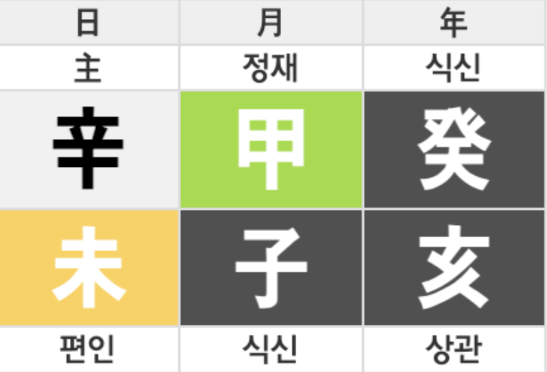 어쩔수 없다. 아버지 그늘을 벗어날 수 없는 사주이다. 문다혜는 예리한 칼로 아버지 갑목을 재목(재물)을 계속해서 바라봐야한 하는 사주다. 만약, 스스로 공직에 뜻이 있어 역량을 발휘하였다면 국가를 위해 살아가겠지만 현재 형국상 그러기에는 늦었다. 만약 국가를 위해 외교관 등 언어와 관련한 직업이고 재물에 큰 욕심을 내지 않으면 좋겠지만 부를 상징하는 갑목 아버지, 직업, 재물이 늘 고립되어 있다. 그래서 더 그것에 집착할 수 밖에 없다.