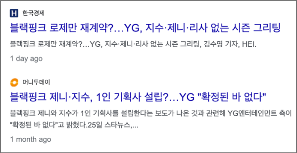 블랙칭크 제니는 소속사인 YG와 전속계약이 지났음에도 재계약 여부가 확인되지 않고 있다. 다른 멤버인 로제만 재계약이 진행되었고 제니, 지수, 리사는 다른 소속사로 이적한다는 소문이 있다. 이와 관련해서 YG는 모든 것이 확인된 바 없다고 전했다. YG 입장에서도 최근 80만여 명을 동원한 K팝 걸그룹 최대 규모 월드투어 '본 핑크(BORN PINK)'를 성공적으로 진행했고, 투어 중 일정이었던 미국 코첼라 페스티벌(양일 합산 25만 명)과 영국 하이드파크(6만 5000명)까지 더해 무려 211만 5000여 명의 관객들이 참여한 것을 고려하여 재계약을 서두르는 것으로 보인다.